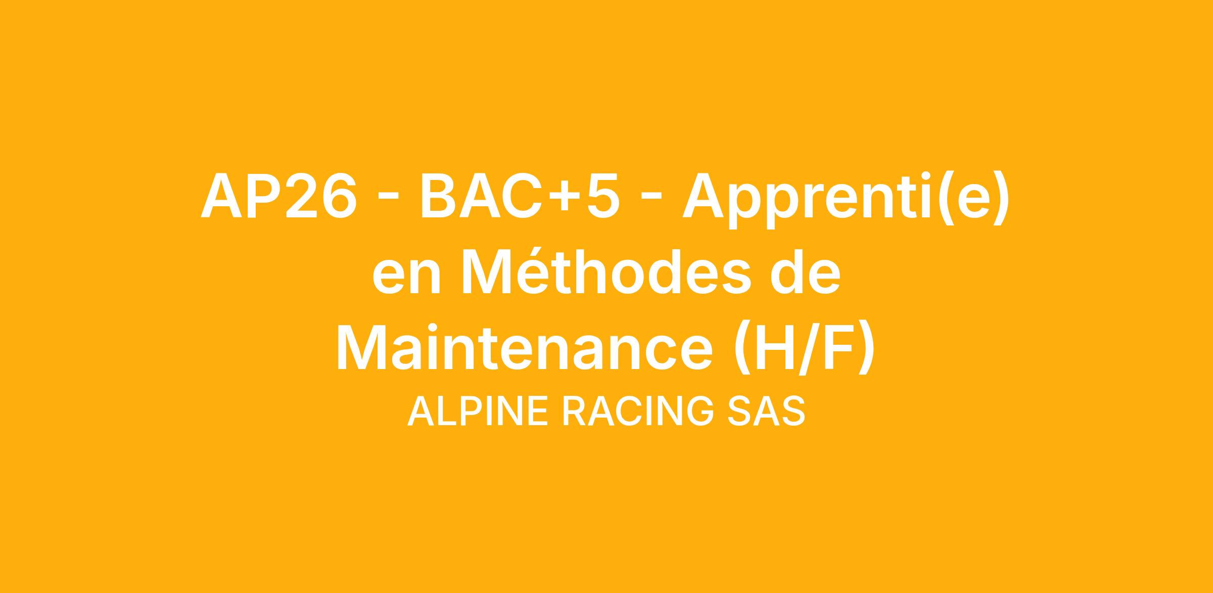 Alpine Racing est à la recherche de son/sa futur(e) alternant(e) en Méthodes de Maintenance pour une durée de 1 à 2 ans dès septembre 2026.