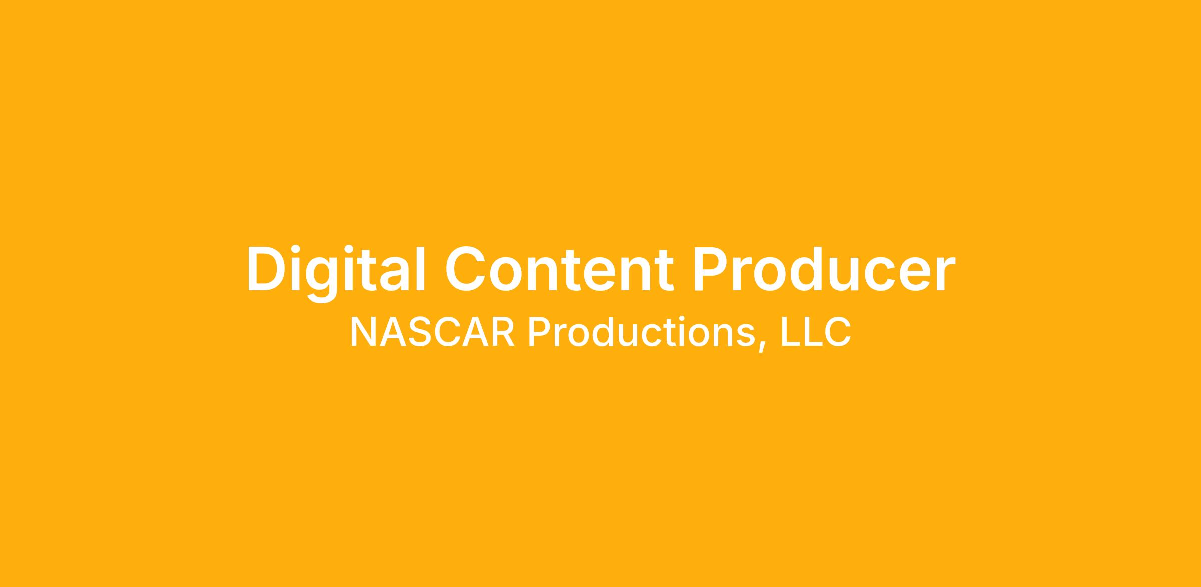 NASCAR seeks a talented professional to join in the position of Digital Content Producer based in our Charlotte, North Carolina office.