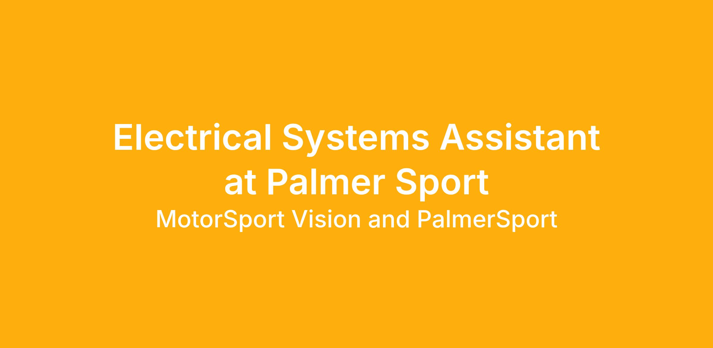 To apply for the position of Electrical Systems Assistant at PalmerSport, please click the “apply” button and attach your covering letter and CV. Please note due to the number of applications, we will only consider applicants with up to date covering letters and CVs.