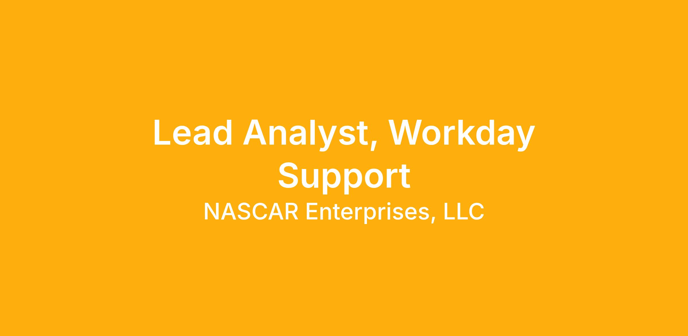 NASCAR seeks a talented professional to join in the position of Workday Lead. This role serves as part of the Workday team, providing expert advice and oversight.