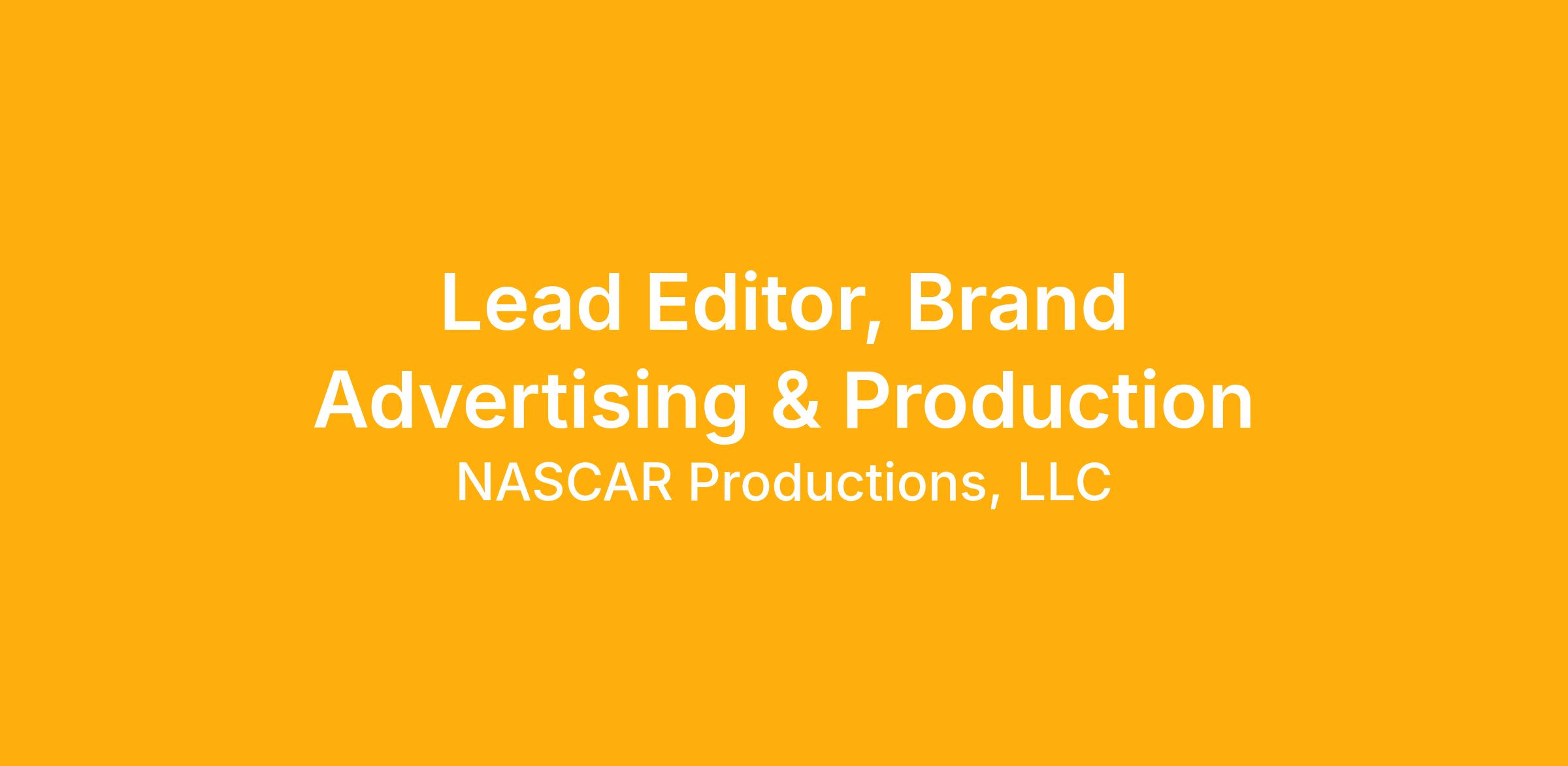 NASCAR seeks a talented professional to join in the position of Lead Editor, Brand Advertising & Production, based in our Charlotte, North Carolina office.