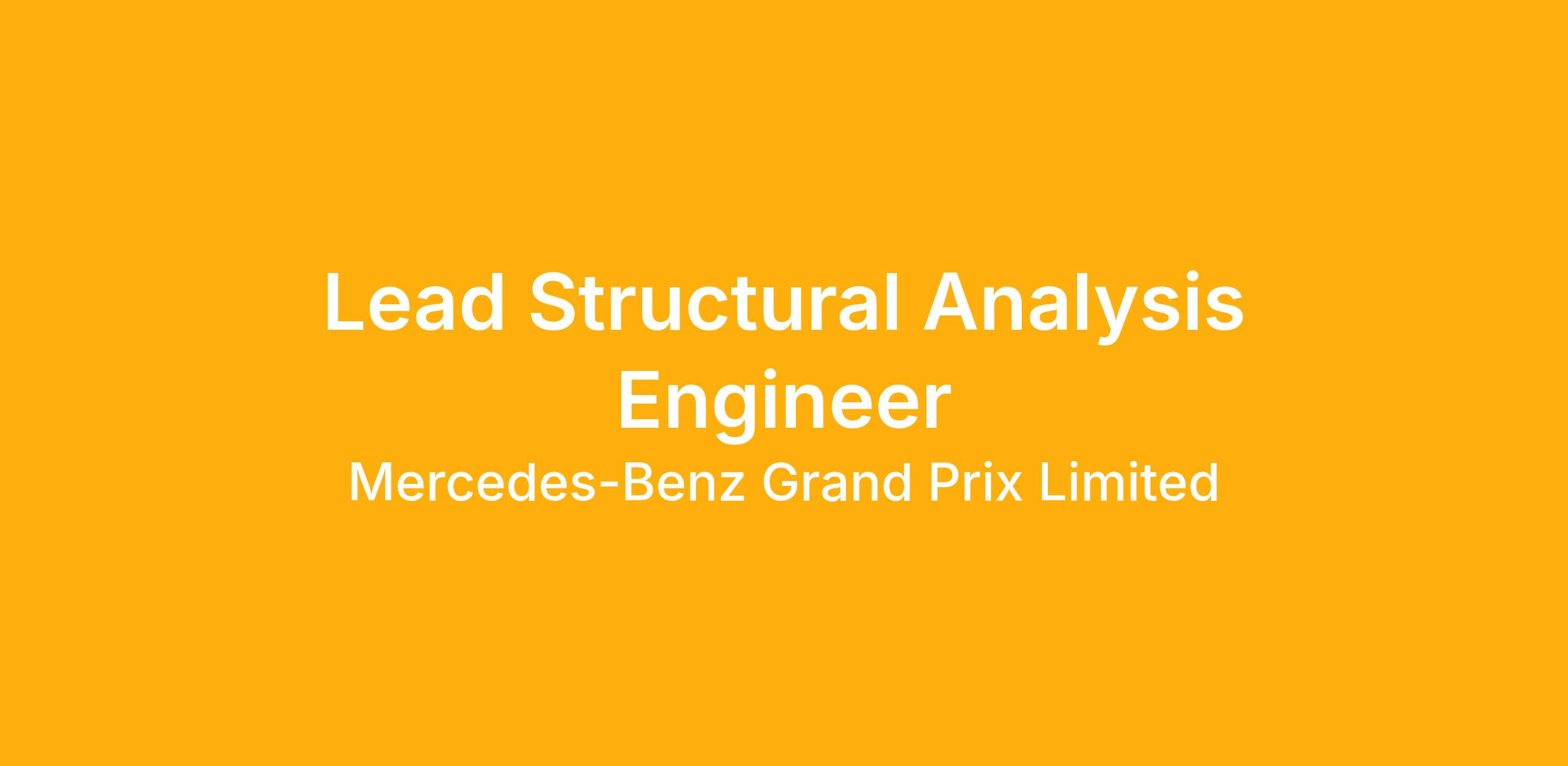 The Mercedes Formula One Team is seeking a passionate, driven, and technically exceptional Lead