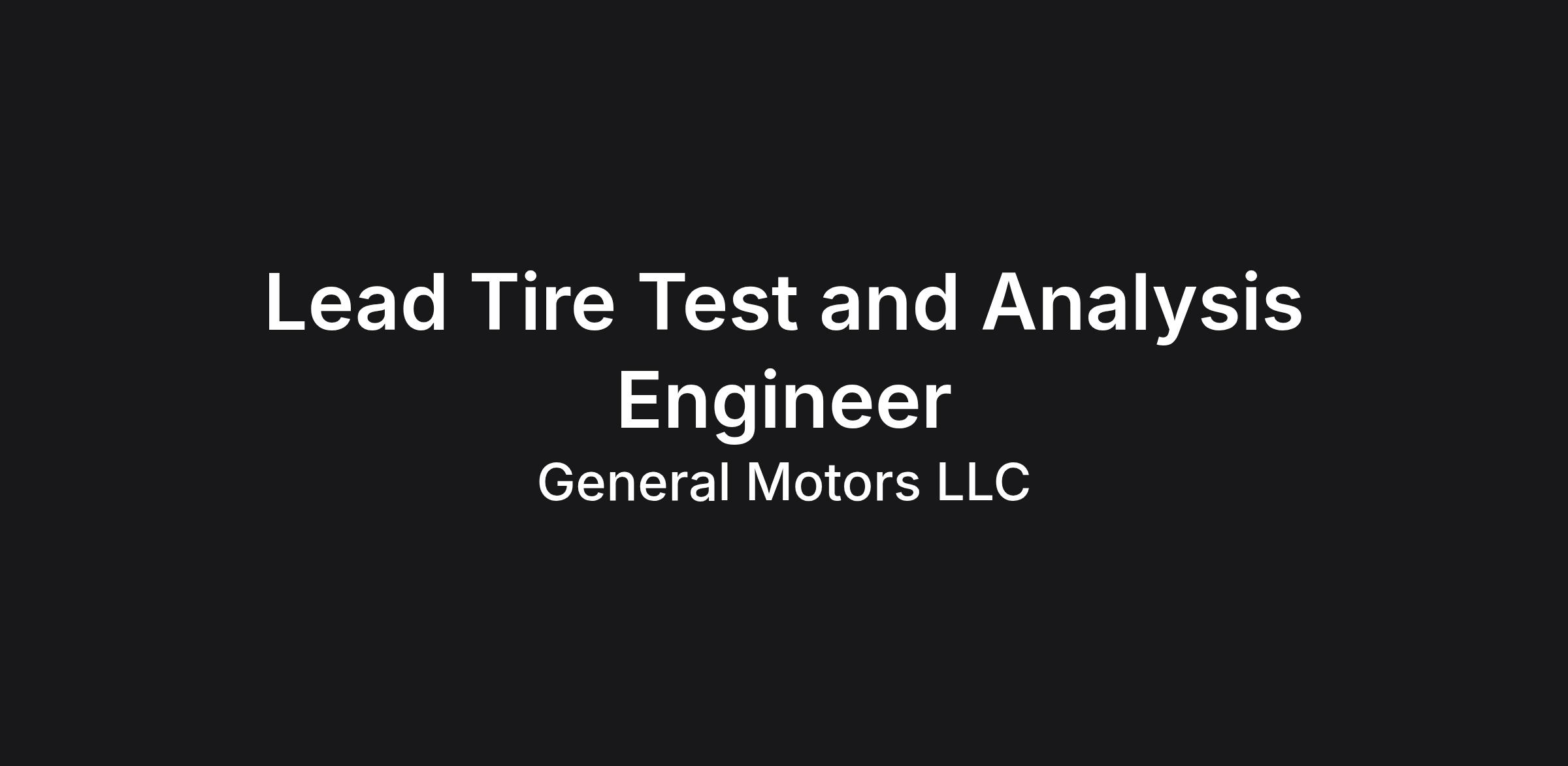 This position offers a career opportunity in the challenging and fast-paced Specialty of Tire Engineering within the Tire-Wheel Systems (TWS) Organization at General Motors (GM). As Lead Tire Test and Analysis Engineer, you will have a leadership role developing New Tire Test Methods and New Tire Analysis Methods to advance technology, improve predicted performance, reduce lead times, and lower development costs. You will work closely with TWS Lab Technicians, Lab Engineers, Technical Specialists, and Tire Suppliers.