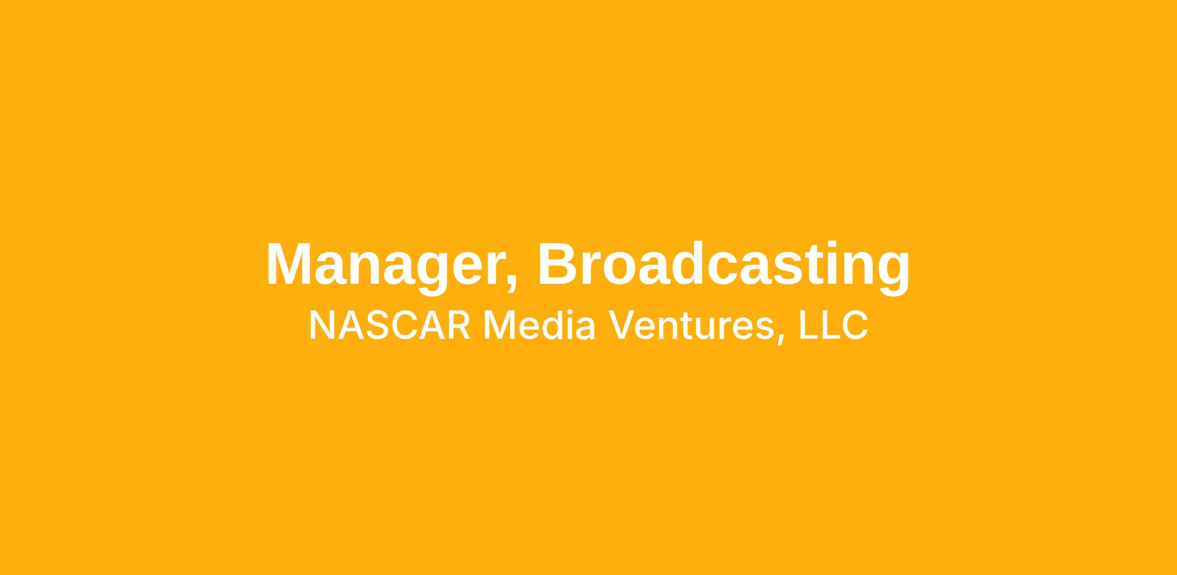 NASCAR is seeking a skilled and detail‑oriented Manager, Broadcasting to join our team in Concord, North Carolina. This role manages the day‑to‑day relationships, scheduling, and operational needs of NASCAR’s domestic television and broadcast partners. The Manager serves as a central liaison between networks, production teams, competition groups, tracks, and internal stakeholders to ensure flawless execution of weekly broadcast requirements.
