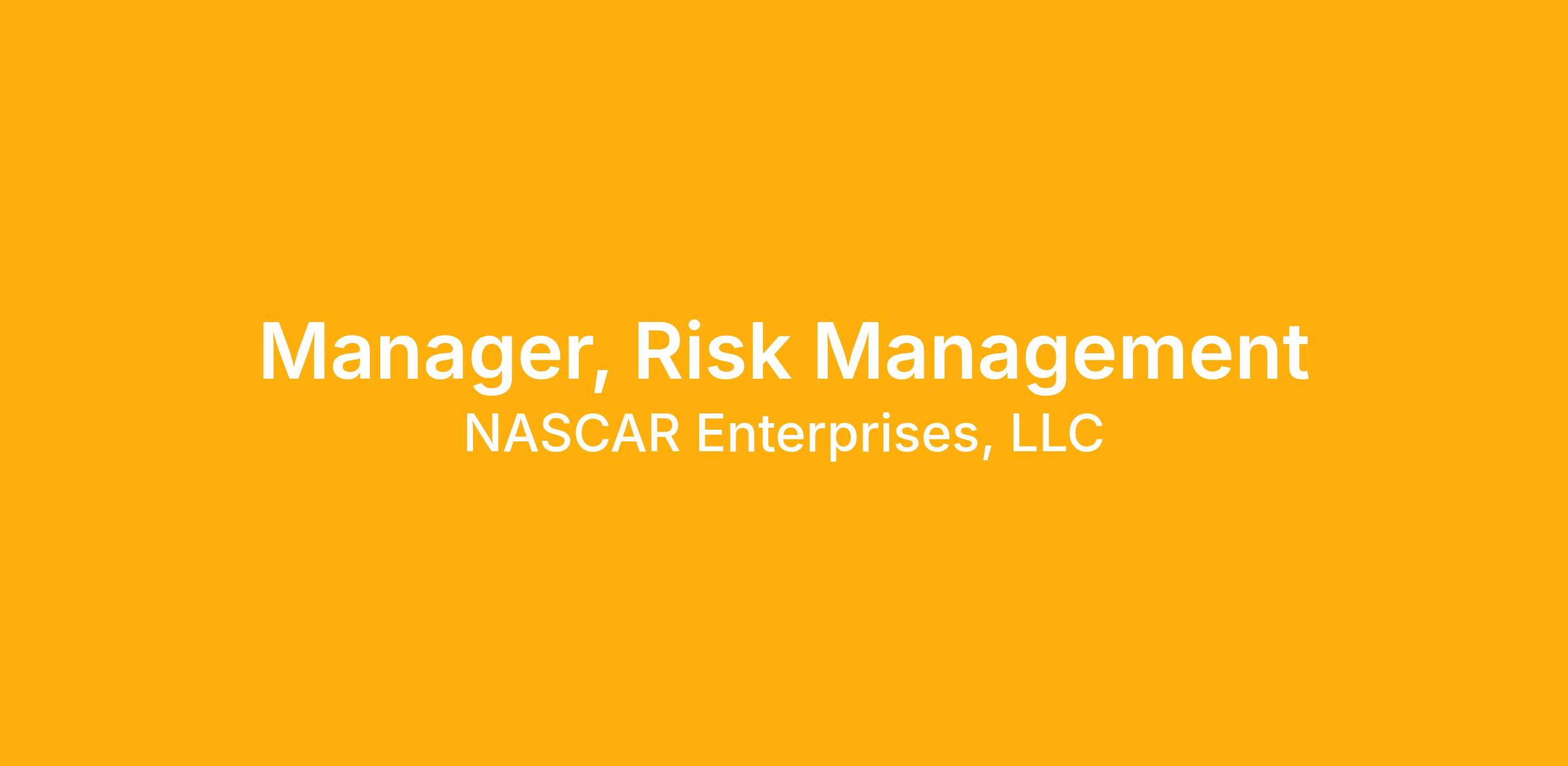 NASCAR seeks a talented professional to join in the position of Manager, Risk Management based in our Daytona Beach, Florida office.