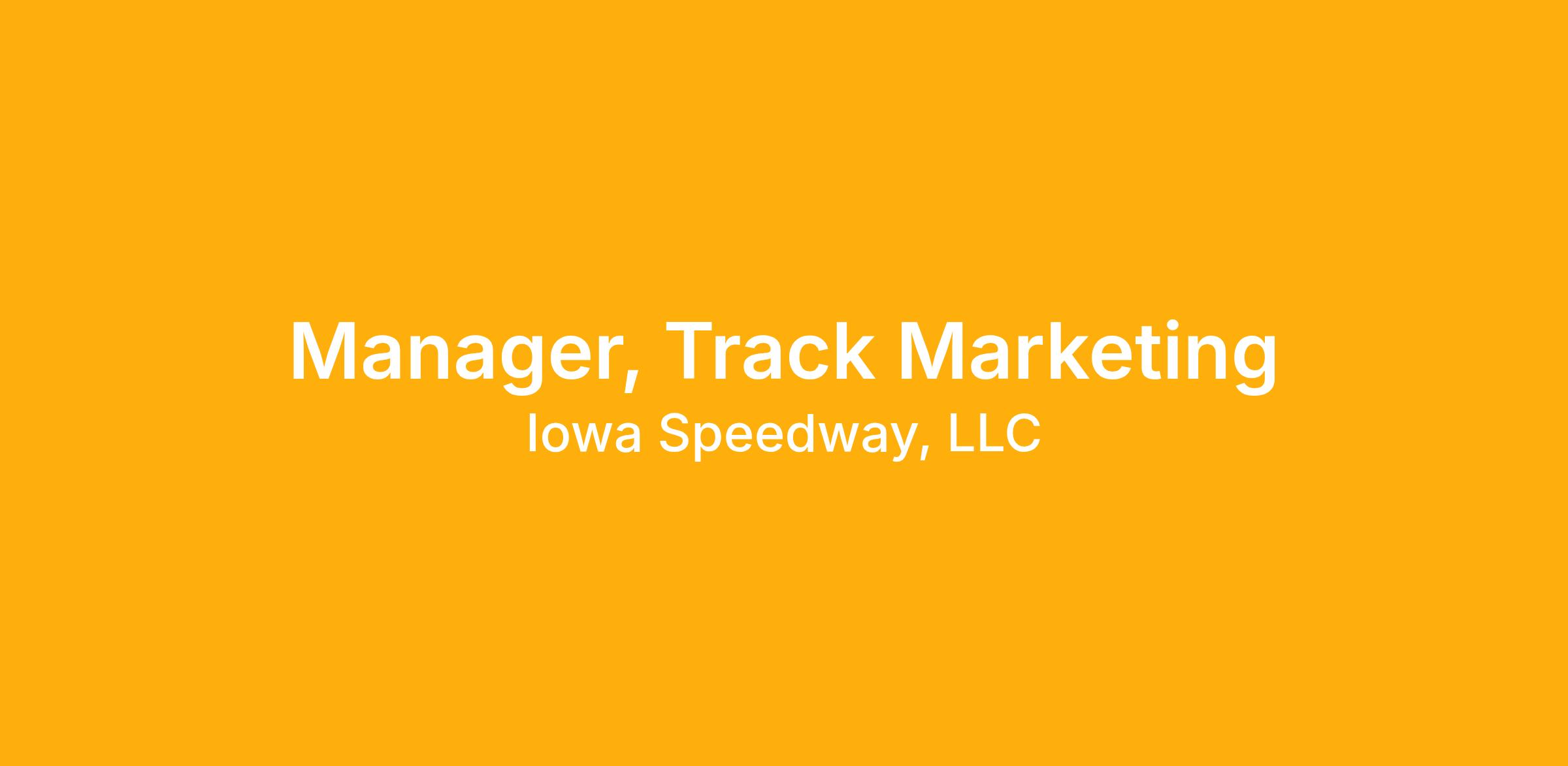 The Manager, Track Marketing supports department colleagues in the development and execution of marketing campaigns, strategies and plans designed to build awareness and drive attendance to track events.