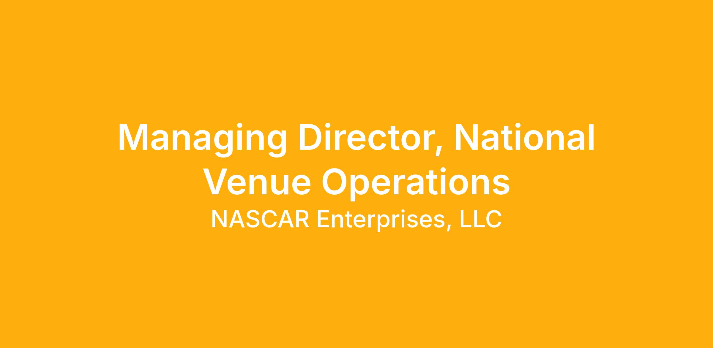 The National Venue Operations Lead is responsible for driving operational excellence, consistency, and collaboration across all NASCAR-owned tracks. This role partners closely with Track Presidents, General Managers, and Operations teams to establish and uphold standards that enhance the fan experience, streamline execution, and improve efficiency across the portfolio. Rather than serving as an additional layer of oversight, this position acts as a central resource and connector, ensuring track operations are supported, aligned, and equipped with best practices, tools, and systems that enable success.