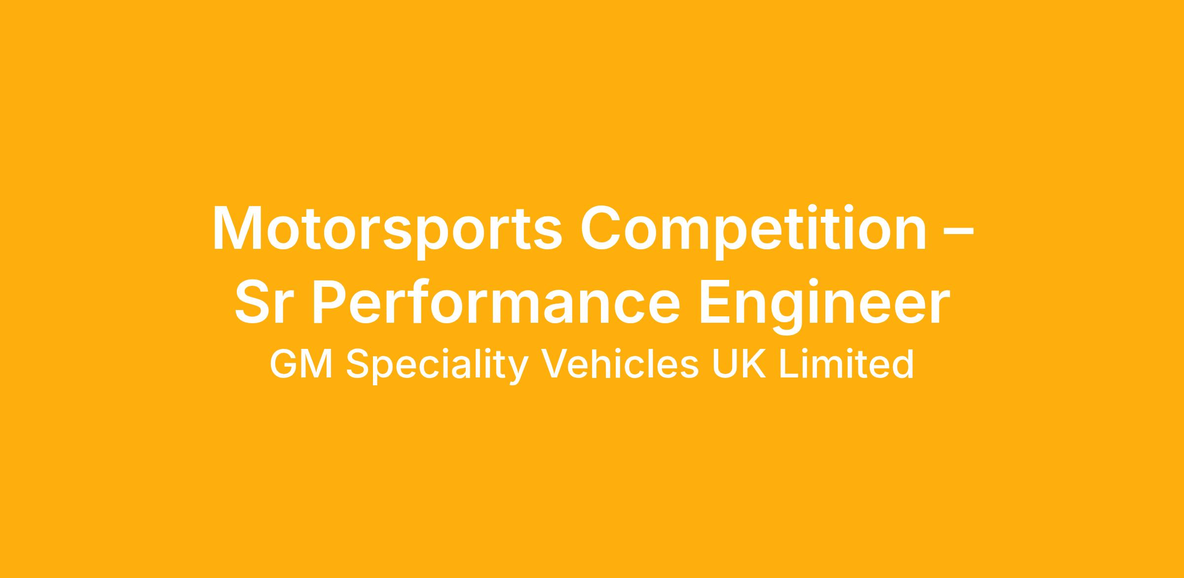 This role is in the Cross-Series Performance Engineering group within the greater GM Motorsports organization. The goal of the Cross-Series Group is to develop performance-focused tools, methods, and complete projects that benefit all GM Motorsports series. As such, a broad understanding of vehicle dynamics, race performance optimization, vehicle testing, and simulation modeling techniques is required to be successful in the variety of work the group undertakes. Given the inter-departmental nature of many of the projects, success in the role will be dependent on effective collaboration with a wide variety of teams, both within the GM motorsports group and external race team partners. Being an effective communicator and teammate is imperative.