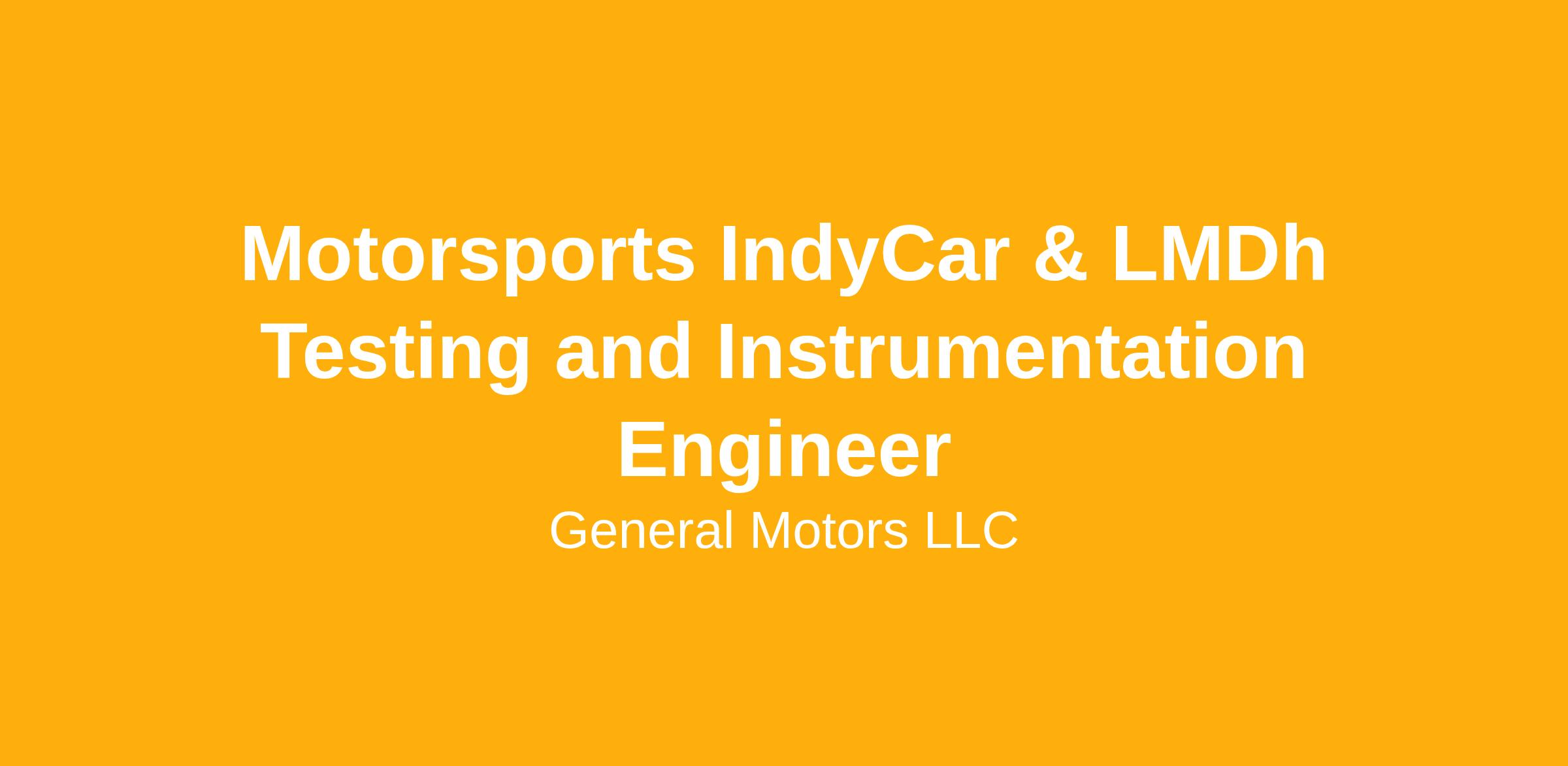 GM Motorsports Performance Engineering is looking to expand its motorsports engineering group. With the expanded program, we are adding a IndyCar and LMDh Testing & Instrumentation Engineer position. This role would work with the GM Motorsports Testing & Instrumentation group to support Chevy IndyCar and Cadillac LMDh programs in data acquisition, instrumentation, and testing of race or test vehicles in any stage of track testing, lab testing, or racing. The position work with the racing programs during all stages of life.