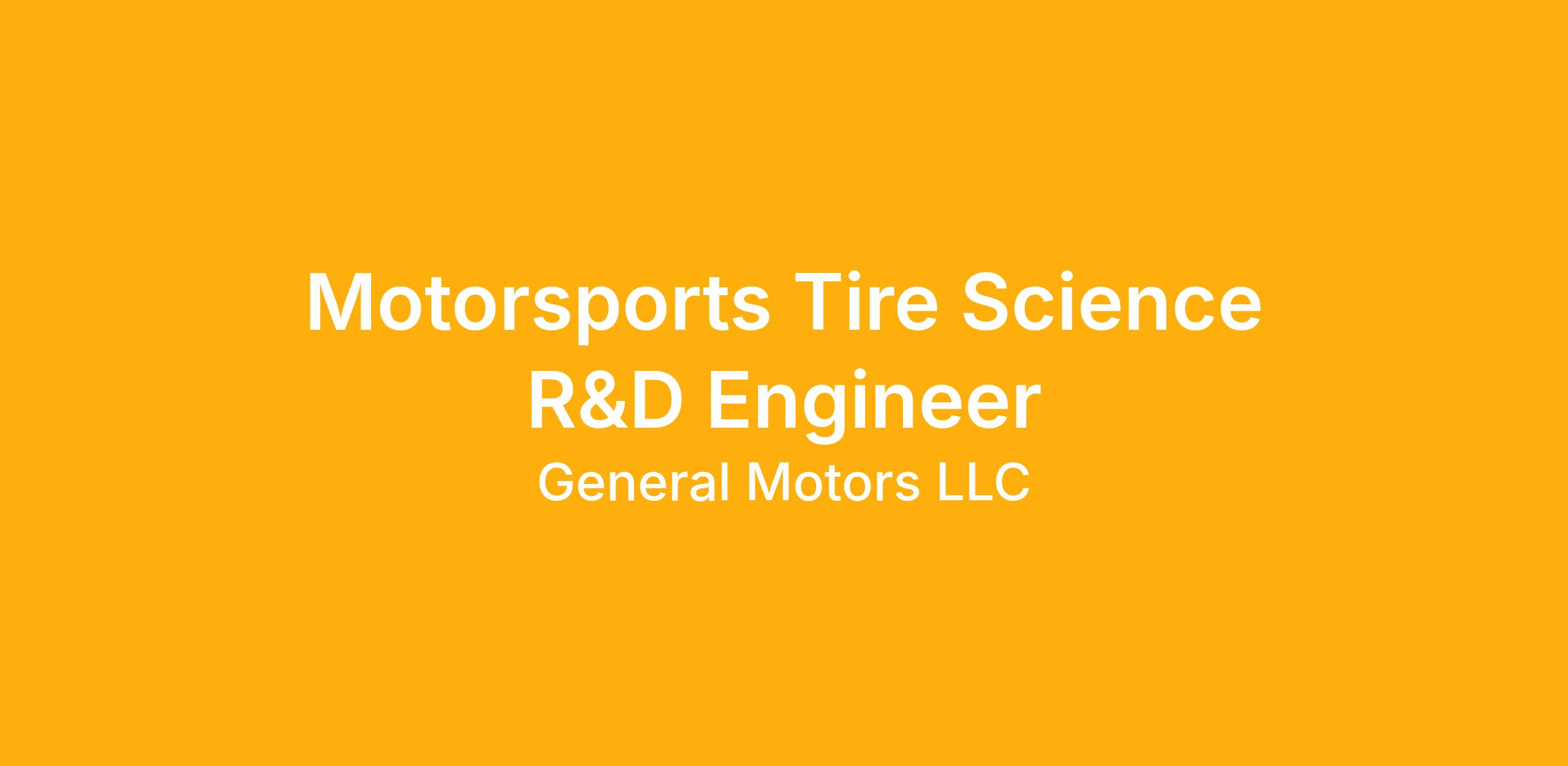Motorsports Tire Science R&D Engineer