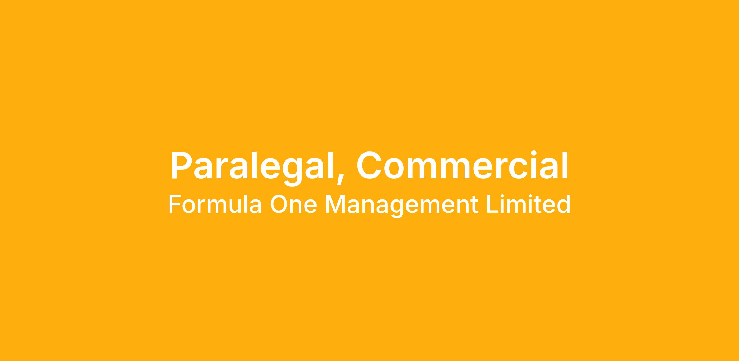 We are seeking a highly motivated paralegal to join the Commercial Legal team, responsible for the legal work associated with supporting Formula 1’s revenue generating agreements with broadcasters, distributors of F1 TV, Global Partners & Official Sponsors and licensees (including experiential and gaming partners) as well as key service providers and advising the wider business in relation to brand protection, advertising standards and data protection compliance.