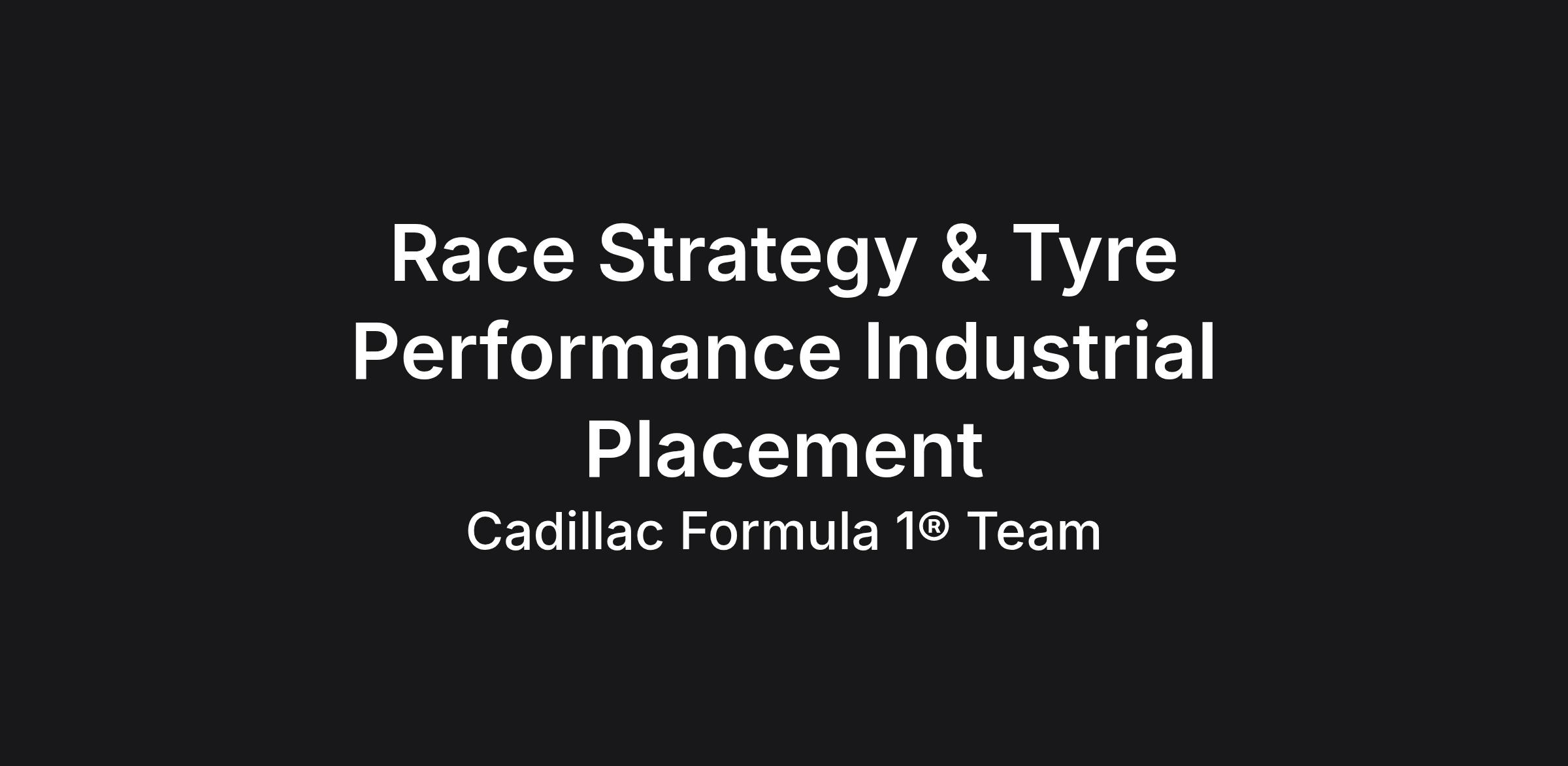 We have an exciting opportunity for a 12-month Industrial Placement student to join The Cadillac Formula 1® Team at our state-of-the-art facility in Silverstone. Working within the Race Strategy & Tyre Performance group, you will support the development of race strategy and tyre performance tools, processes, and analysis methods, while contributing to race preparation, event execution, and post-event reporting.