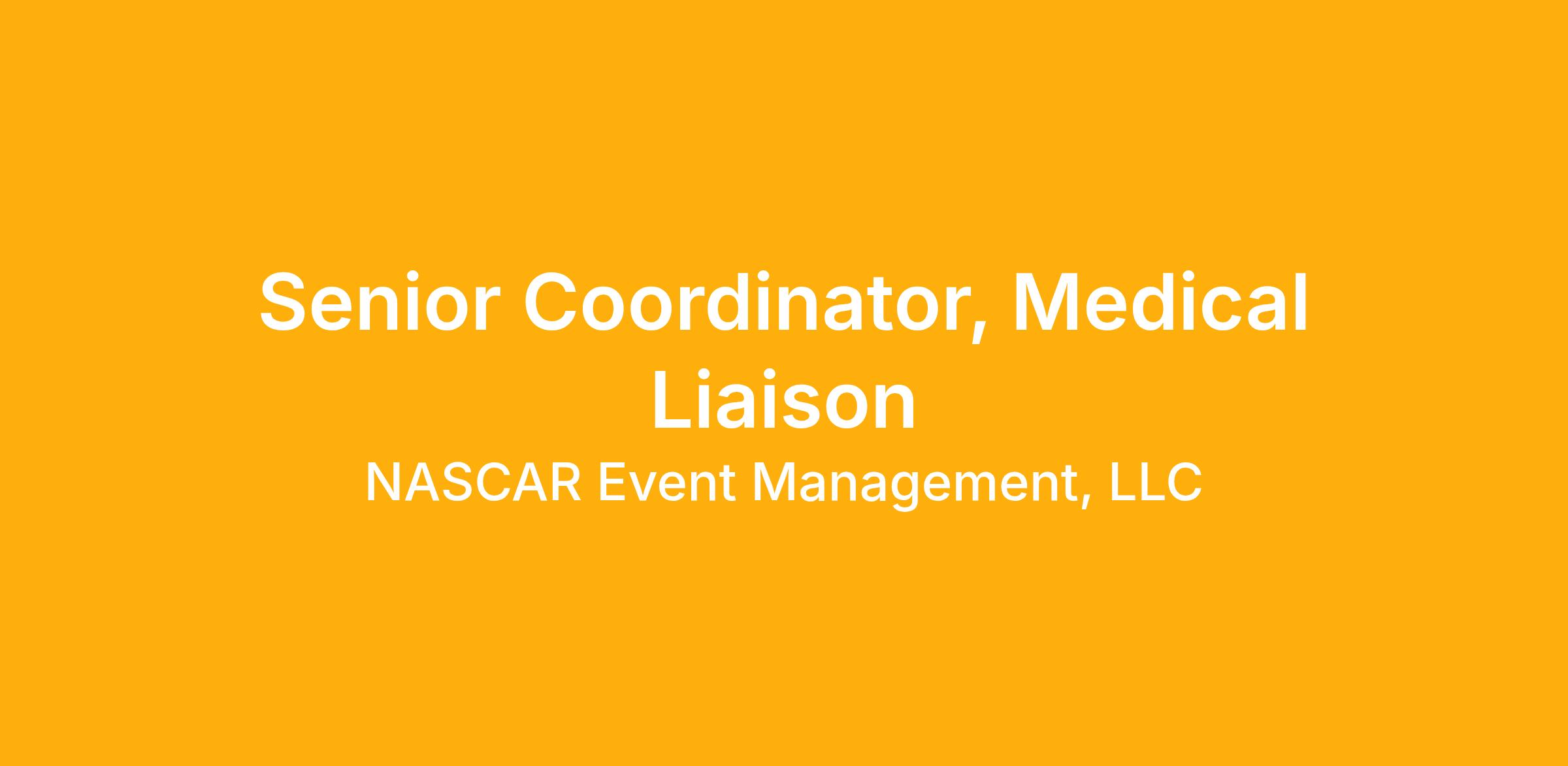 NASCAR seeks a talented professional to join in the position of Senior Coordinator, Medical Liaison.