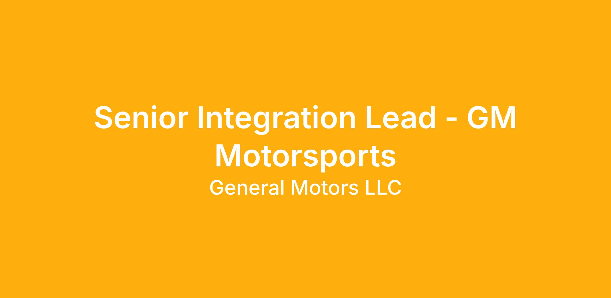 The Sr. Integration Lead on the GM Motorsports Data Science team is responsible for the reliability and day-to-day operation of key software applications used across NASCAR, IndyCar, and other GM racing programs.