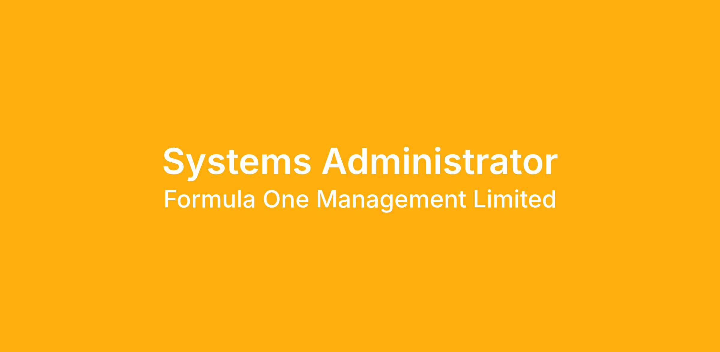 We are looking for a Systems Administrator to join our IT team at Formula 1's Media & Technology Centre in Biggin Hill. Reporting into our IT Systems Manager,